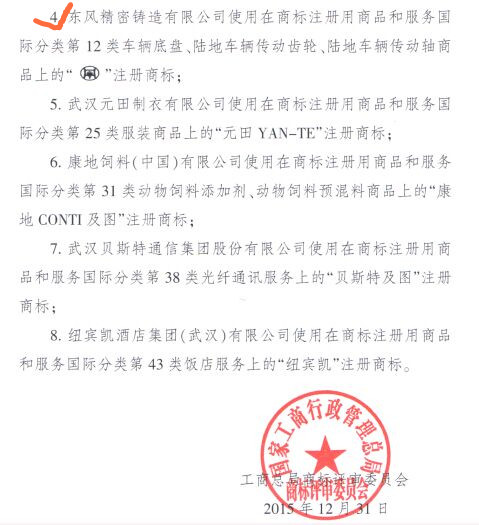 2015年12月31日,根據(jù)國(guó)家工商總局商標(biāo)評(píng)審委員會(huì)商評(píng)馳字[2015]53號(hào)文件通告,東風(fēng)精鑄“和鼎”圖形商標(biāo)(商標(biāo)注冊(cè)證號(hào)4055897/12類),被國(guó)家工商行政管理總局認(rèn)定為“中國(guó)馳名商標(biāo)”。“和鼎”商標(biāo)成為東風(fēng)汽車零部件(集團(tuán))有限公司首個(gè)成功注冊(cè)并入選中國(guó)馳名商標(biāo)的汽車零部件品牌。