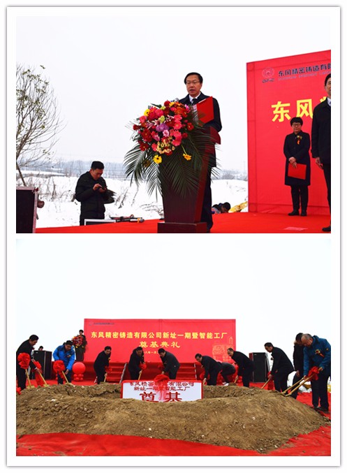 1月29日上午9時,東風精密鑄造有限公司新址一期暨智能工廠項目舉行開工奠基儀式。合肥巢湖經(jīng)濟開發(fā)區(qū)黨工委副書記程習龍先生、安徽省鑄造協(xié)會會長解明國先生、安徽省鑄造協(xié)會秘書長張林先生、東風汽車零部件(集團)有限公司副總經(jīng)理韓力先生、奇瑞新能源汽車技術有限公司合肥分公司總經(jīng)理馬向陽先生以及東風精密鑄造有限公司總經(jīng)理杜孔明、黨委書記孫長虹,東風精鑄供應商代表、東風精鑄技術人員代表參加了本次奠基儀式。