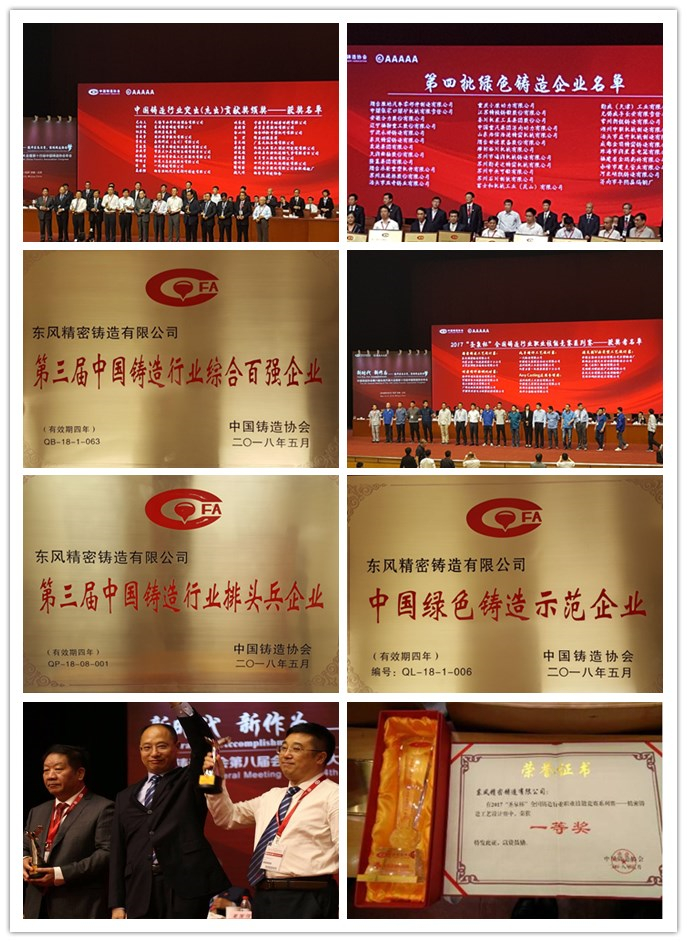 東風(fēng)精密鑄造有限公司全硅溶膠薄殼技術(shù)榮獲中國精鑄技術(shù)創(chuàng)新獎。